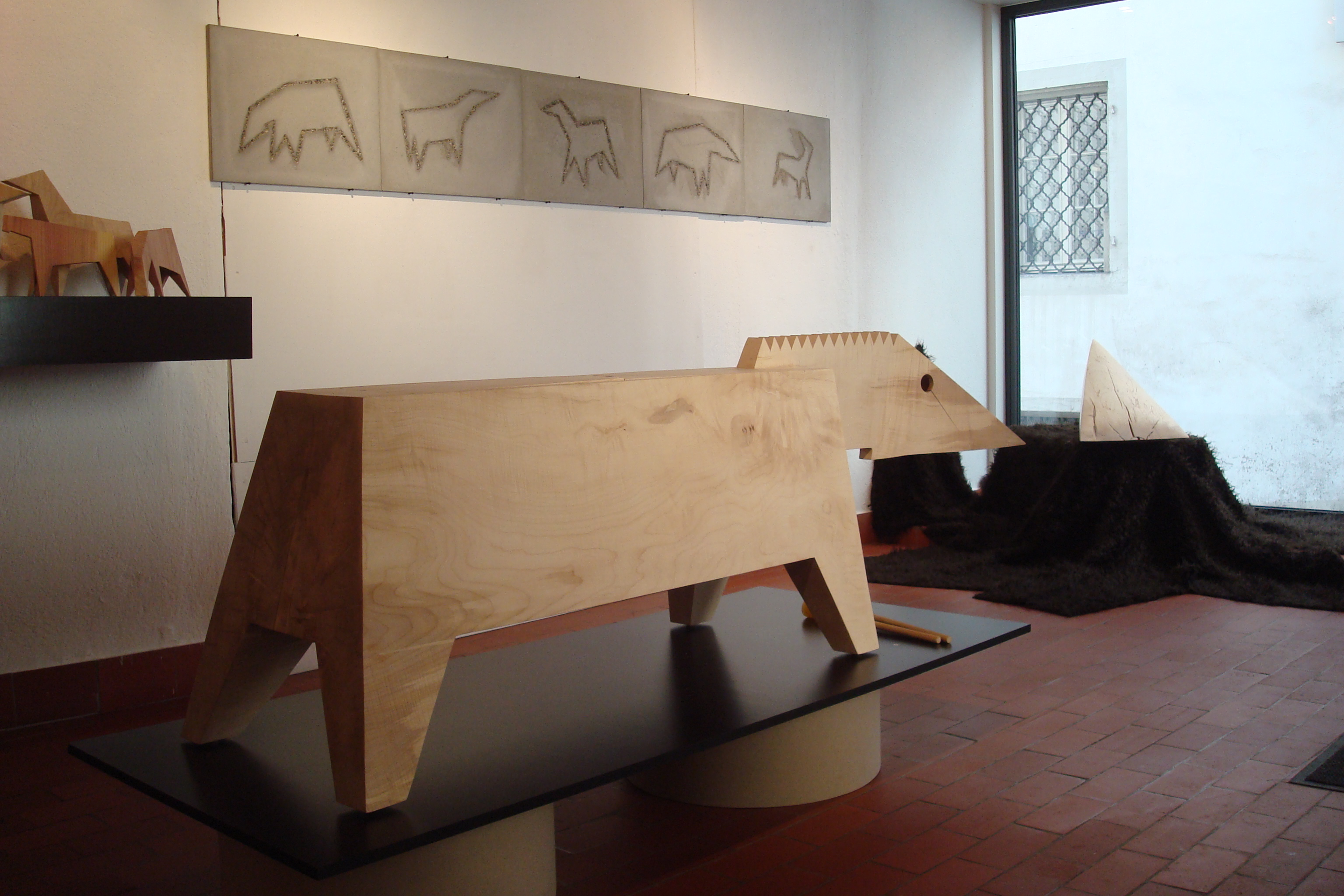 Bezeichnung / MaterialHolz, Beton, Kunstfell